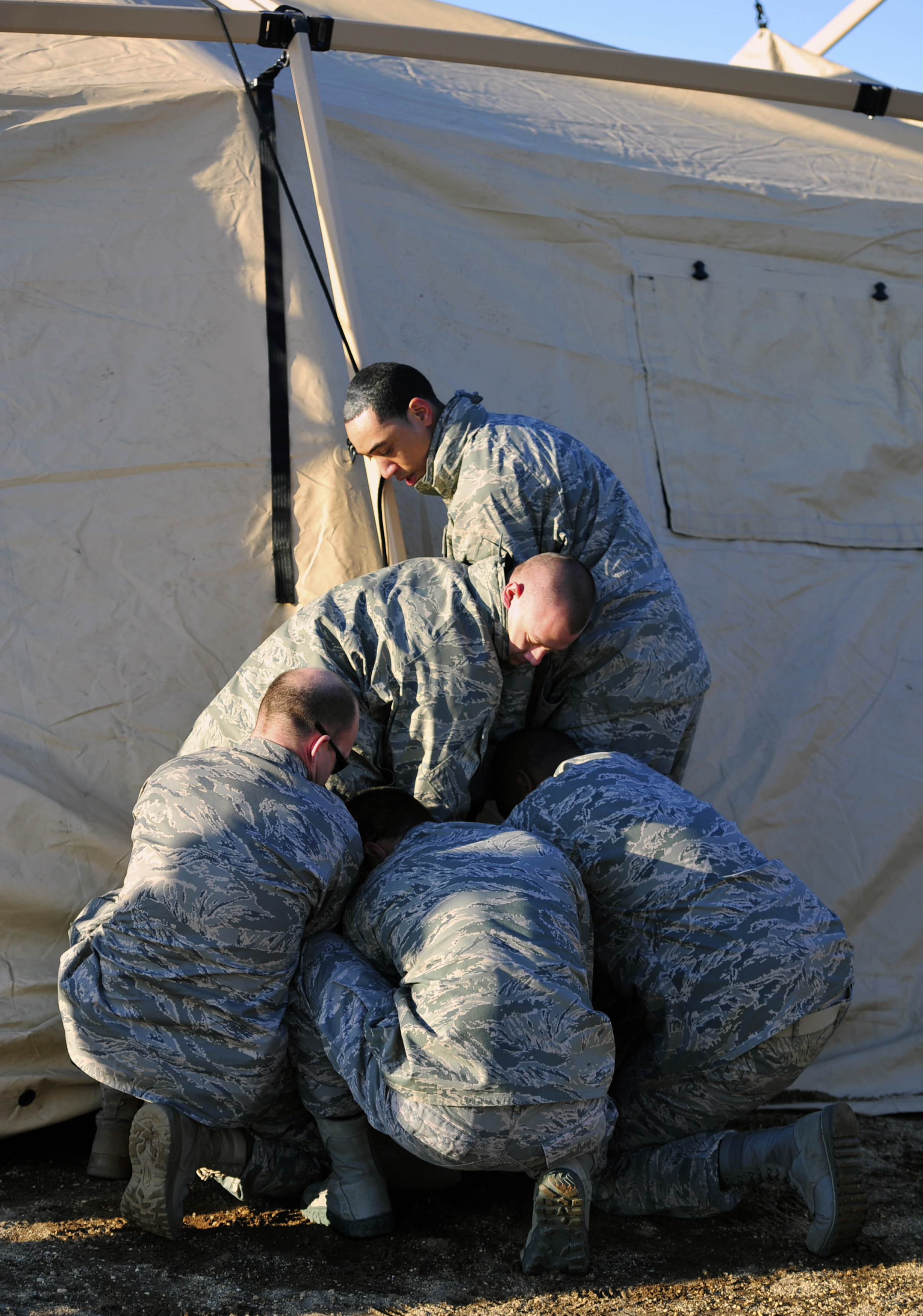 Senior Airman Jesley Crider, 819th Global Support Squadron command post mission manager at Joint Base McGuire-Dix-Lakehurst, N.J., sets up a AN/PSC-5D multi-band/multi-mission communications terminal during a 621st Contingency Response Element field training exercise at the Lakehurst area of the joint base Feb. 23, 2011. As a command post technician, Airman Crider represents one of the approximately 12 career fields in a 30-man CRE. These lightweight units are deployed worldwide, often with no-notice, to disaster areas and austere battlefield locations to assist with the movement of critical cargo. (U.S. Air Force Photo/Tech. Sgt. Parker Gyokeres)