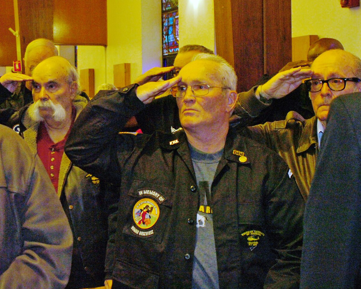 Col. Shelley L. Balderson, Army Support Activity-Fort Dix commander, (left), and Retired Army Chaplain (Col.) Ronald W. Benzing, render a salute for service members who paid the ultimate price, during the Vietnam War 50th Anniversary Commemoration here Dec. 1. A commemorative 50-year anniversary lapel pin was presented to all veterans who served from November 1965 to April 30, 1975. (U.S. Army photo by David Moore/Released)